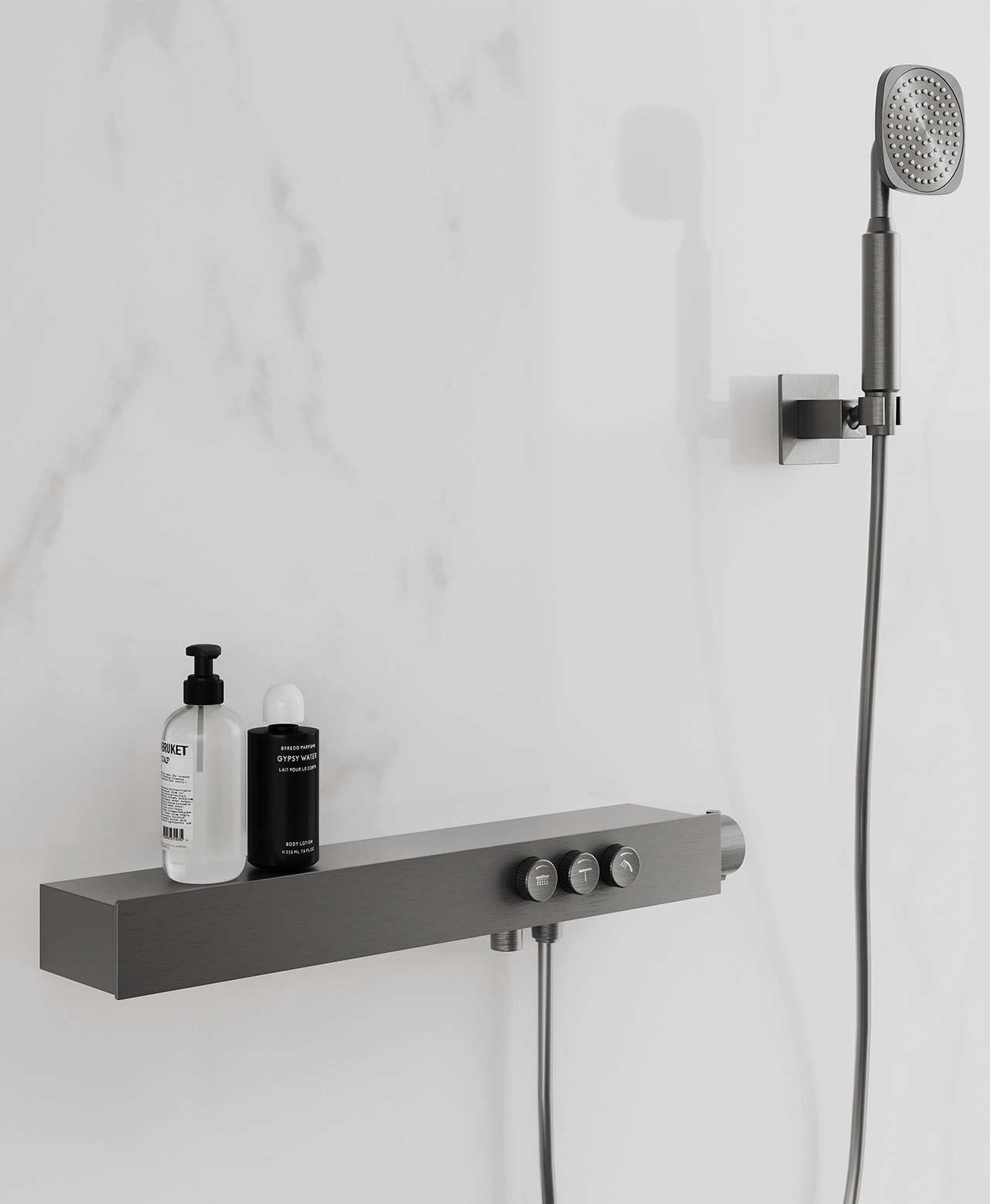 The Stream series in sleek Steel Grey combines modern design with cutting-edge functionality. Featuring a 3-function system with GoClick flow control, it offers seamless switching between modes for a tailored shower experience. Elevate your bathroom with the Stream concealed thermostatic shower, designed for performance, convenience, and style.
