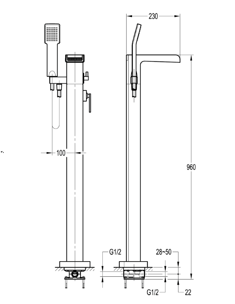 Single Lever Bath / Shower Mixer Floor-Mounted